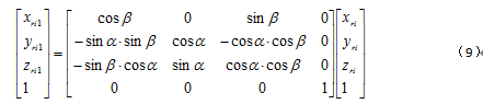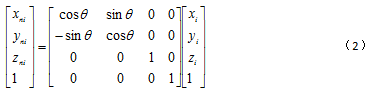 ,利用三維坐標變換原理,將此空(kōng)間(jiān)直線做兩次(cì)旋轉即可保證與回轉軸線重合,可得當前被測點實際坐標(biāo)公式: