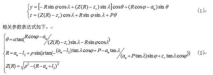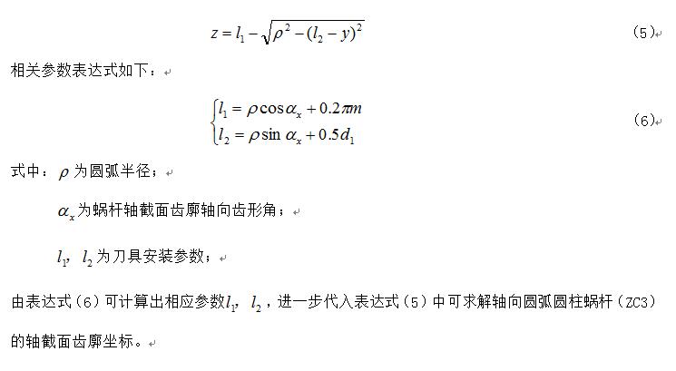 ,進一步代入表達(dá)式(1)中(zhōng)可求解圓環麵包絡圓柱蝸杆(ZC1)的軸截麵齒廓坐標。