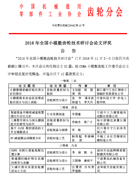2016年11月5-8日,“2016年全國小模(mó)數齒輪技術研討會”成(chéng)功在四川都江堰召開,青青草网站公司在行業會議中發表了具有技術創新性(xìng)的三篇論文:《微小模(mó)數齒輪精度測量新(xīn)方法在齒輪測量中心(xīn)上的應用》、 《三維(wéi)數字測頭與測頭跟蹤技術的研(yán)究與應用》、《基於精密測量技術組建測量線的蝸杆M值自動分(fèn)選機設計》;其中,《三維數字測頭與測頭跟蹤技術的研究與應用》榮獲二等獎(jiǎng)。
